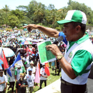 Presidente Komisaun Nasionál ( CPN), Partidu Libertasaun Popular, Antonio Freitas hatoo kestaun ne’e iha intervensaun kampania kandidatu númeru sorteiu 6 Francisco Guterres Lú Olo ba dasia iha munisípiu Manatuto kampu Merkadu tuan kuarta 09/03/2022.