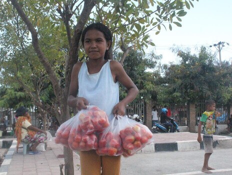 Lafaek News–Estudante sétimu ano Eskola Bázika III sekulu Sergio Veira de Melo, Aisha de Castro, sente triste ho desizaun governu suspende eskola iha territoriu nasional, loro-loron utiliza tempu eskola nian hodi faan tomate haleu merkadu Taibessi.