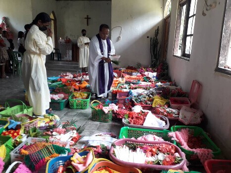 Amu Selebrante hatoo asuntu ne’e ba Jornalista lafaek news iha kapela Nossa Senhora de Fatíma suku Leuro postu Administrativu Lospalos munisipiu Lautem Tersa 2/11/2021 hafoin remata misa.