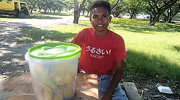 Susar tebes, iha tempu ida sente susar liu ba osan hodi hatan netik ba moris loro-loron nian, bolu Papa-ho Mama nia naran la simu ka la hatan lalais, tanba iha hela rai dook ne’eba, mane oan metan midar ne’e dulas nia hanoin no kakutak oinsá labele laran metin ba inan-aman be iha rai dook, nia hamosu dalan diak ida atu hakat ho esforsu tomak oinsá bele hetan osan, dulas kakutak la saugate, rezultadu diak tebes ba nia mak fan haas ne’ebé koa pedasuk-pedasuk oan, tau iha plástiku mutin laran falun rua folin sentavus 25, tau iha balde laran tutur no tula ba kbaas leten la’o hadulas sidade Dili, no husi Masin-Lidun ba fatin turizmu relijiozu Saun Paulo II Tasi-Tolu hodi fan hetan netik osan dolar ida ka rua iha loron ida.