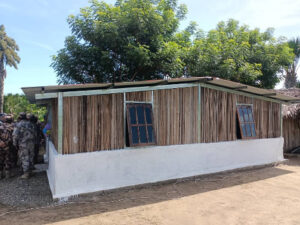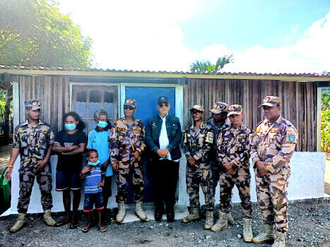 Lafaek News–Batugade-Premiadu Nobel da Paz, José Ramos Horta, akompaña hosi Komandante Unidade Polisia Fronteira (UPF), Superintendente, Euclides Belo, loron kinta (17/02/2022), entrega tan uma dignu ida ba familia kbiit laek, Manuel Soares ho nia espoja Berta Verdial, iha sira nia hela fatin fronteira Aldeia Tolan TCL 23, Suku Batugade, Postu Administrativu Balibo, Munisipiu Bobonaro.