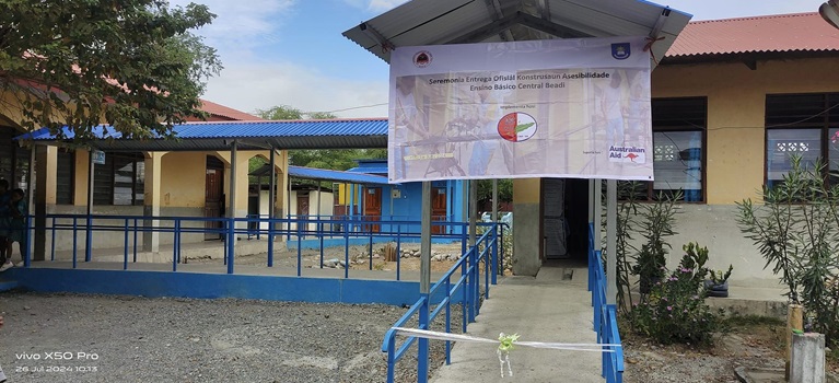 Lafaek News—Organizasaun Raes Hadomi Timor (RAES), loron 25/07/2024, ofisialmente entrega fasilidade asesimentu asesibilidade ba Eskola Báziku Sentral (EBC-sigla Portugés) suku Mehara postu administrativu munnisipiu Lautém, inkui Eskola Baziku Sentral Be’adi suku Aiteas Manatutu atu ema ho defisiénsia bele asesu ho asesivel.