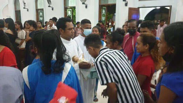 Lafaek News--Padre Pároku Balide, Graciano Santos Barros husu sarani sira hamos fuan antes tama misa natal kalan,kosok oan Jesus moris mai lori dame domin unidade no paz ba ema hotu iha ho laran mos.