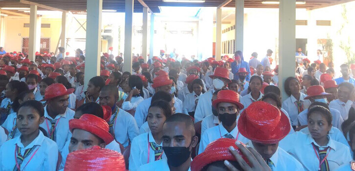Observasaun Jornalista lafaek news nota estudante sira hatais uniforme, feto mane uza ropa mutin-metan ho xapeu no estudante sira lori lapizeira ida ho kadernu ho atributu seluk tan hodi tuir orientasaun.