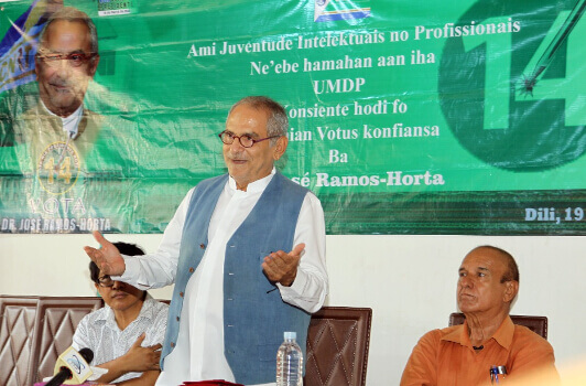 Ami juventude intelektuál no profisionál ne’ebé hamahaan aan iha UMDP konsente hodi apoia ami nia votus ho konfansa ba Dr. Jose Ramos Horta atu manan iha primeira ronda hamutuk ho maun boot Xanana,” nia afirma.